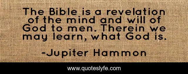 This page presents the quote "The Bible is a revelation of the mind and will of God to men. Therein we may learn, what God is.". Author of this quote is Jupiter Hammon. This quote is about men, mind, bible,.