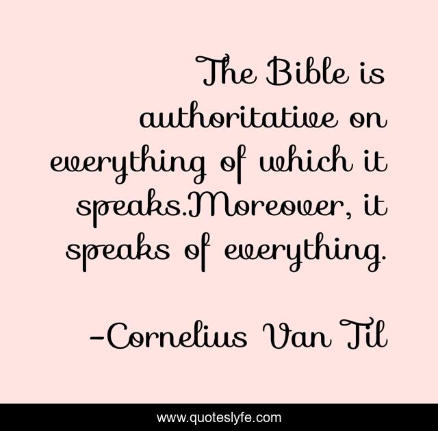 This page presents the quote "The Bible is authoritative on everything of which it speaks.Moreover, it speaks of everything.". Author of this quote is Cornelius Van Til. This quote is about authoritative, apologetics, bible, speaks, cornelius-van-til,.
