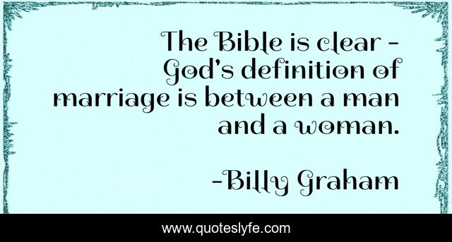This page presents the quote "The Bible is clear - God's definition of marriage is between a man and a woman.". Author of this quote is Billy Graham. This quote is about god, woman, man,.