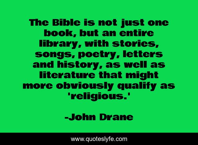 This page presents the quote "The Bible is not just one book, but an entire library, with stories, songs, poetry, letters and history, as well as literature that might more obviously qualify as 'religious.'". Author of this quote is John Drane. This quote is about book, library, history,.