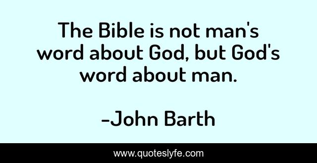 This page presents the quote "The Bible is not man's word about God, but God's word about man.". Author of this quote is John Barth. This quote is about bible, word, man,.