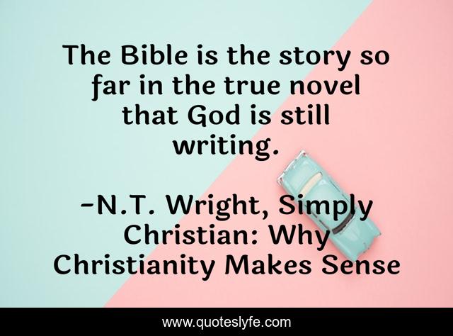This page presents the quote "The Bible is the story so far in the true novel that God is still writing.". Author of this quote is N.T. Wright, Simply Christian: Why Christianity Makes Sense. This quote is about holy-scripture, bible,.