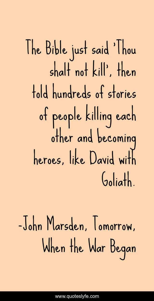 "John Marsden, Tomorrow, When the War Began Quotes." Quoteslyfe.com, 2025. Sat. 06 Dec. 2025. <https://www.quoteslyfe.com/quote/The-Bible-just-said-Thou-shalt-not-169223>.