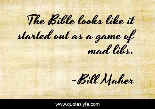 This page presents the quote "The Bible looks like it started out as a game of mad libs.". Author of this quote is Bill Maher. This quote is about religion, bible, humor, christianity,.