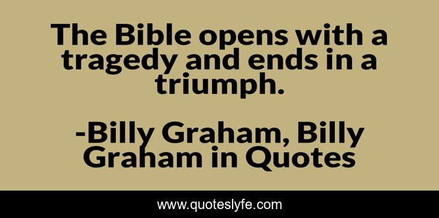 This page presents the quote "The Bible opens with a tragedy and ends in a triumph.". Author of this quote is Billy Graham, Billy Graham in Quotes. This quote is about bible, billy-graham,.