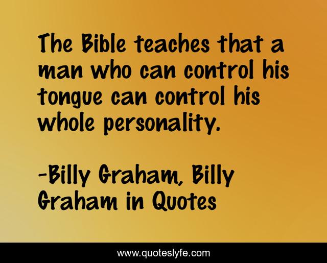 This page presents the quote "The Bible teaches that a man who can control his tongue can control his whole personality.". Author of this quote is Billy Graham, Billy Graham in Quotes. This quote is about speech, billy-graham,.