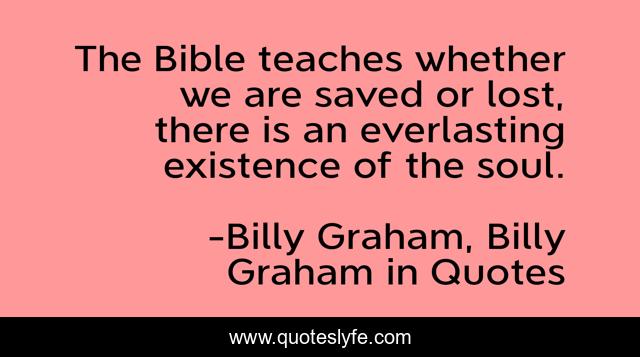 This page presents the quote "The Bible teaches whether we are saved or lost, there is an everlasting existence of the soul.". Author of this quote is Billy Graham, Billy Graham in Quotes. This quote is about billy-graham, the-soul,.