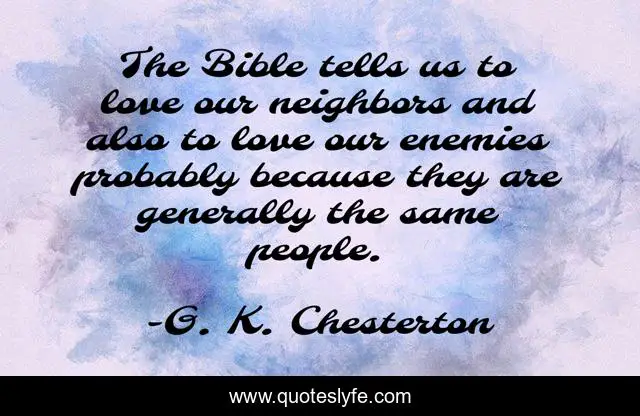 This page presents the quote "The Bible tells us to love our neighbors and also to love our enemies probably because they are generally the same people.". Author of this quote is G. K. Chesterton. .