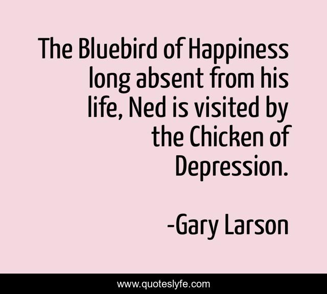 This page presents the quote "The Bluebird of Happiness long absent from his life, Ned is visited by the Chicken of Depression.". Author of this quote is Gary Larson. This quote is about life, depression, long,.
