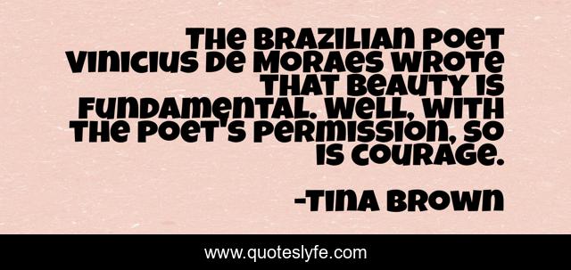 This page presents the quote "The Brazilian poet Vinicius de Moraes wrote that beauty is fundamental. Well, with the poet's permission, so is courage.". Author of this quote is Tina Brown. This quote is about well, beauty, fundamental,.