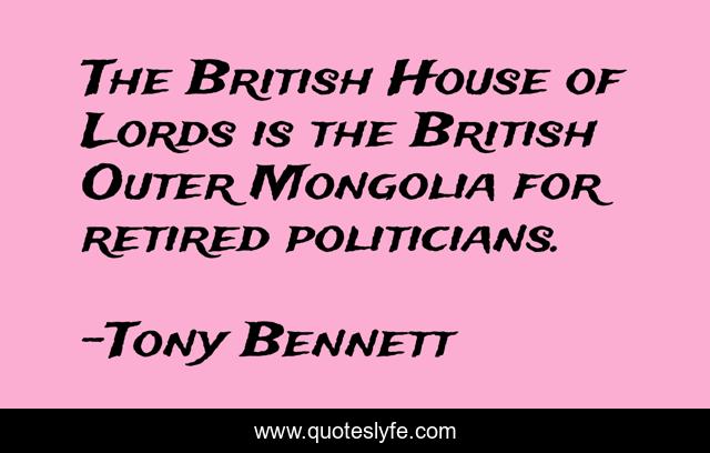 This page presents the quote "The British House of Lords is the British Outer Mongolia for retired politicians.". Author of this quote is Tony Bennett. .