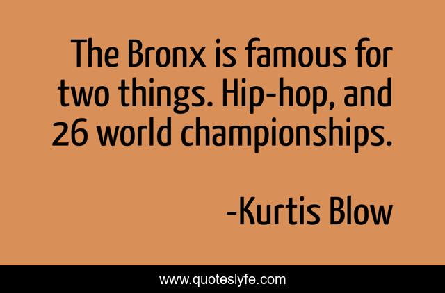This page presents the quote "The Bronx is famous for two things. Hip-hop, and 26 world championships.". Author of this quote is Kurtis Blow. This quote is about world, two, hip-hop,.