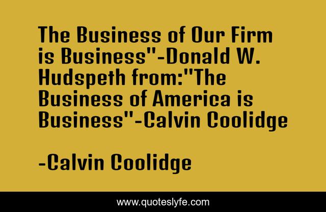 This page presents the quote "The Business of Our Firm is Business"-Donald W. Hudspeth from:"The Business of America is Business"-Calvin Coolidge". Author of this quote is Calvin Coolidge. This quote is about chapter, business-advice, business, business-start-up, dissolution, legal, attorneys, lawyers, law,.