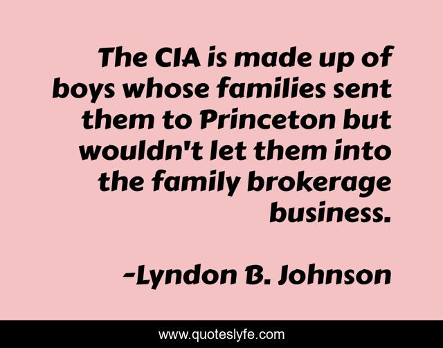 This page presents the quote "The CIA is made up of boys whose families sent them to Princeton but wouldn't let them into the family brokerage business.". Author of this quote is Lyndon B. Johnson. This quote is about made, up, family,.