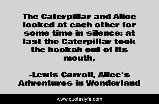 This page presents the quote "The Caterpillar and Alice looked at each other for some time in silence: at last the Caterpillar took the hookah out of its mouth, ". Author of this quote is Lewis Carroll, Alice's Adventures in Wonderland. .