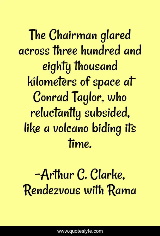 "Arthur C. Clarke, Rendezvous with Rama Quotes." Quoteslyfe.com, 2025. Sat. 06 Dec. 2025. <https://www.quoteslyfe.com/quote/The-Chairman-glared-across-three-hundred-and-110143>.