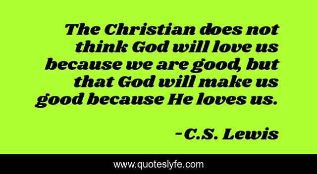 This page presents the quote "The Christian does not think God will love us because we are good, but that God will make us good because He loves us.". Author of this quote is C.S. Lewis. This quote is about god, christianity, religion,.