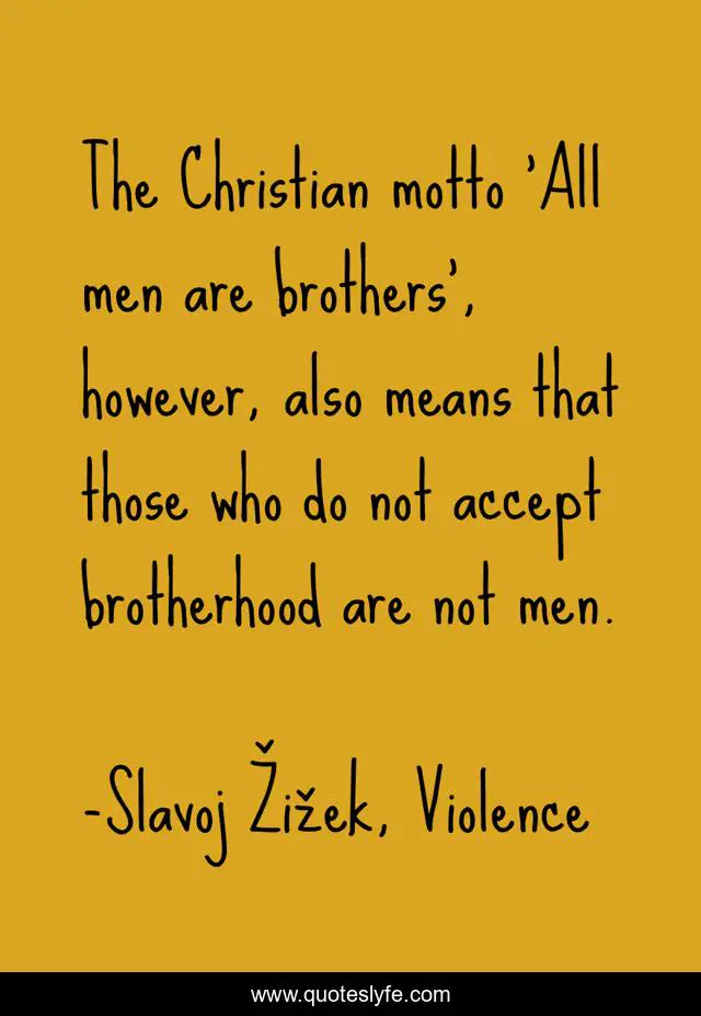 "Slavoj Žižek, Violence Quotes." Quoteslyfe.com, 2025. Sat. 06 Dec. 2025. <https://www.quoteslyfe.com/quote/The-Christian-motto-All-men-are-brothers-84782>.