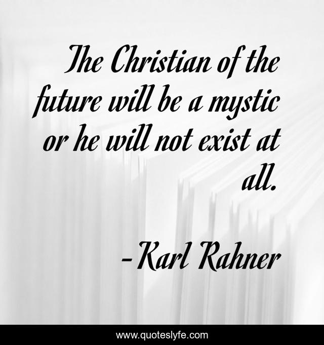 This page presents the quote "The Christian of the future will be a mystic or he will not exist at all.". Author of this quote is Karl Rahner. This quote is about christian, exist,.