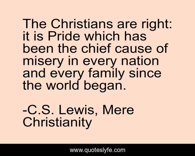 "C.S. Lewis, Mere Christianity Quotes." Quoteslyfe.com, 2025. Sun. 07 Dec. 2025. <https://www.quoteslyfe.com/quote/The-Christians-are-right-it-is-Pride-61639>.