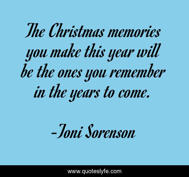 This page presents the quote "The Christmas memories you make this year will be the ones you remember in the years to come.". Author of this quote is Toni Sorenson. This quote is about memories, christmas, holidays,.