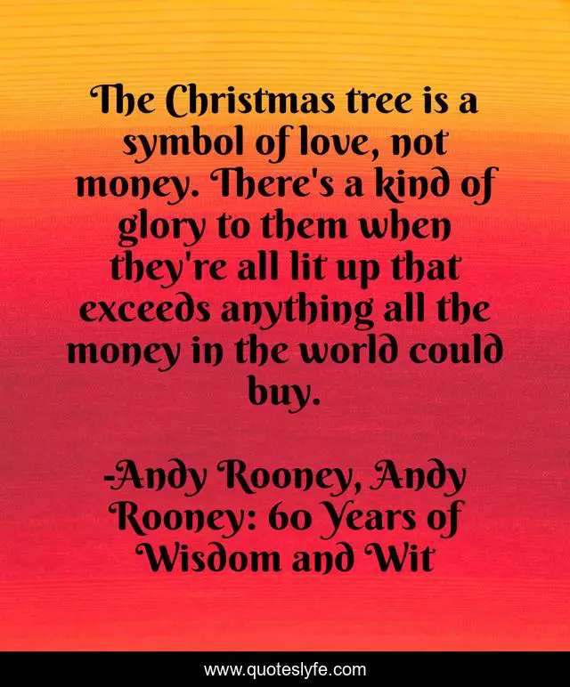 This page presents the quote "The Christmas tree is a symbol of love, not money. There's a kind of glory to them when they're all lit up that exceeds anything all the money in the world could buy.". Author of this quote is Andy Rooney, Andy Rooney: 60 Years of Wisdom and Wit. This quote is about christmas-tree, christmas,.