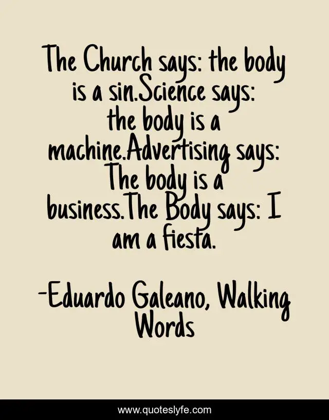 "Eduardo Galeano, Walking Words Quotes." Quoteslyfe.com, 2025. Tue. 09 Dec. 2025. <https://www.quoteslyfe.com/quote/The-Church-says-the-body-is-a-216893>.
