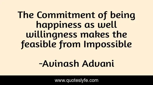 This page presents the quote "The Commitment of being happiness as well willingness makes the feasible from Impossible". Author of this quote is Avinash Advani. This quote is about happiness-life, possible, willingness,.