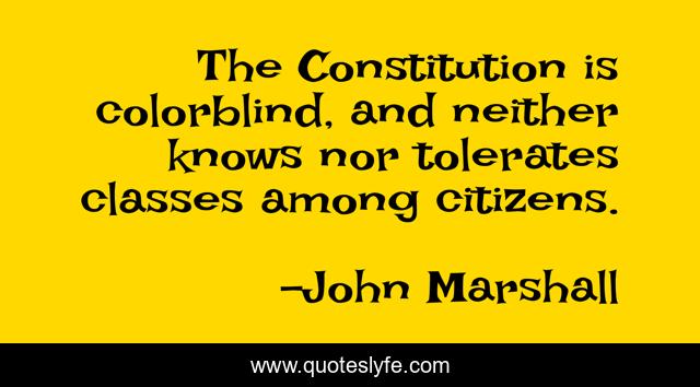 This page presents the quote "The Constitution is colorblind, and neither knows nor tolerates classes among citizens.". Author of this quote is John Marshall. This quote is about justice, law, equality, constitution,.
