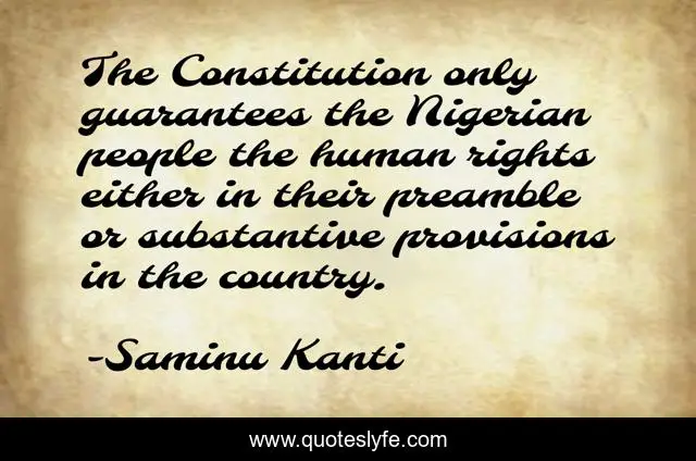 This page presents the quote "The Constitution only guarantees the Nigerian people the human rights either in their preamble or substantive provisions in the country.". Author of this quote is Saminu Kanti. This quote is about human-rights, constition, nigeria,.