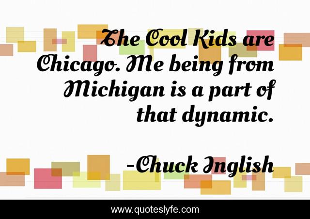 This page presents the quote "The Cool Kids are Chicago. Me being from Michigan is a part of that dynamic.". Author of this quote is Chuck Inglish. This quote is about me, kids, chicago,.