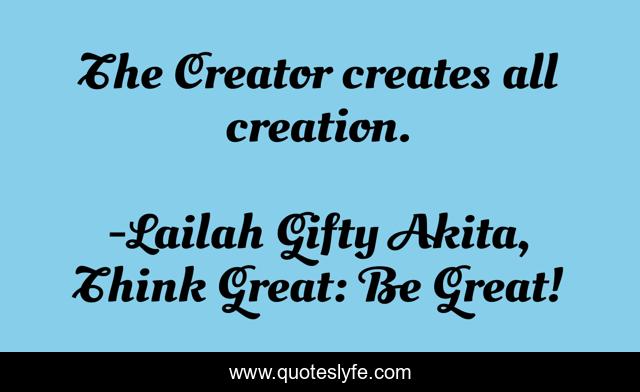"Lailah Gifty Akita, Think Great: Be Great! Quotes." Quoteslyfe.com, 2025. Fri. 05 Dec. 2025. <https://www.quoteslyfe.com/quote/The-Creator-creates-all-creation-140395>.