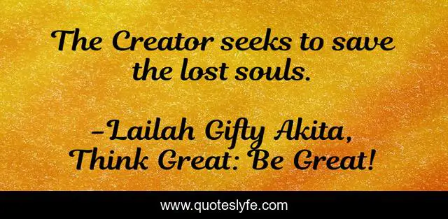 "Lailah Gifty Akita, Think Great: Be Great! Quotes." Quoteslyfe.com, 2025. Fri. 05 Dec. 2025. <https://www.quoteslyfe.com/quote/The-Creator-seeks-to-save-the-lost-62640>.
