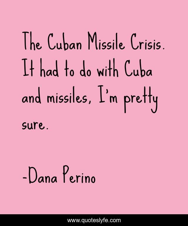 This page presents the quote "The Cuban Missile Crisis. It had to do with Cuba and missiles, I'm pretty sure.". Author of this quote is Dana Perino. This quote is about gaffe, politicians, dumb,.