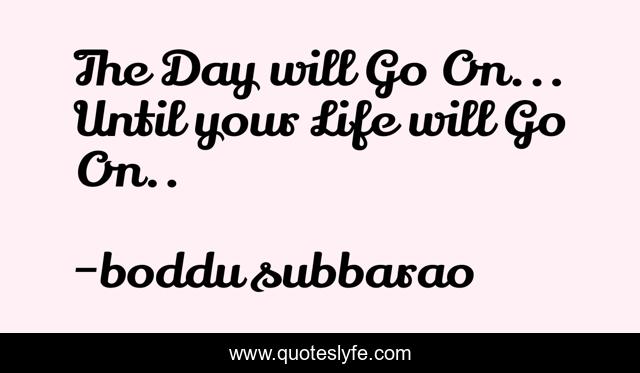 This page presents the quote "The Day will Go On... Until your Life will Go On..". Author of this quote is boddu subbarao. .