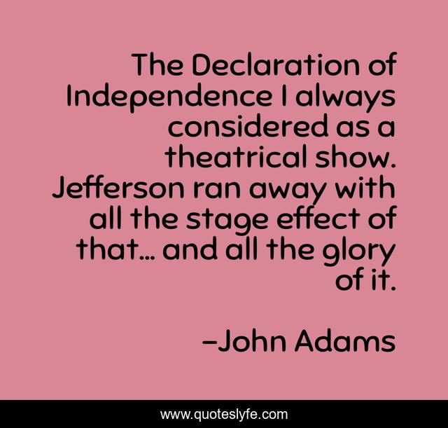 The Declaration of Independence I always considered as a theatrical show. Jefferson ran away with all the stage effect of that... and all the glory of it.