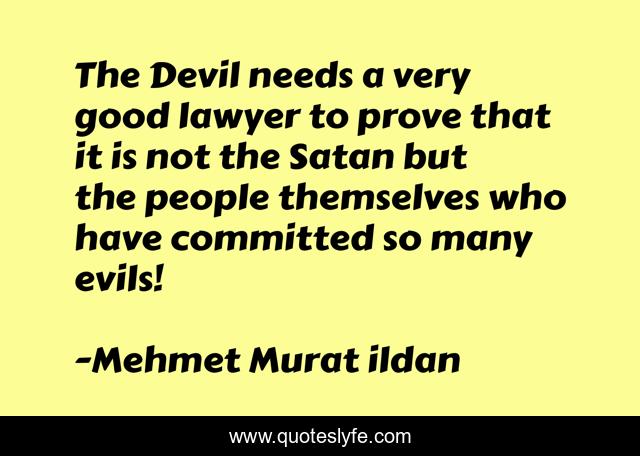 This page presents the quote "The Devil needs a very good lawyer to prove that it is not the Satan but the people themselves who have committed so many evils!". Author of this quote is Mehmet Murat ildan. .