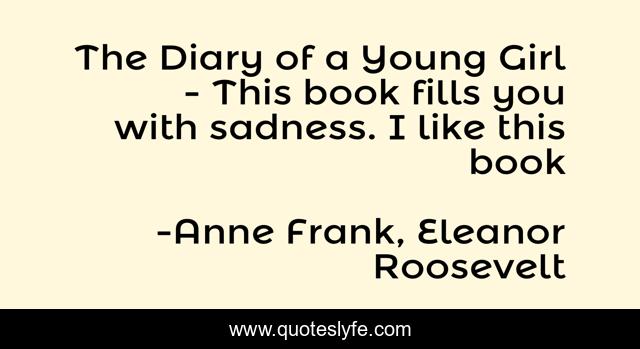 This page presents the quote "The Diary of a Young Girl - This book fills you with sadness. I like this book". Author of this quote is Anne Frank, Eleanor Roosevelt. .