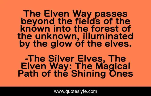This page presents the quote "The Elven Way passes beyond the fields of the known into the forest of the unknown, illuminated by the glow of the elves.". Author of this quote is The Silver Elves, The Elven Way: The Magical Path of the Shining Ones. This quote is about mystical, elven, magic, elven-way, magical, magical-world, illumination, elves,.