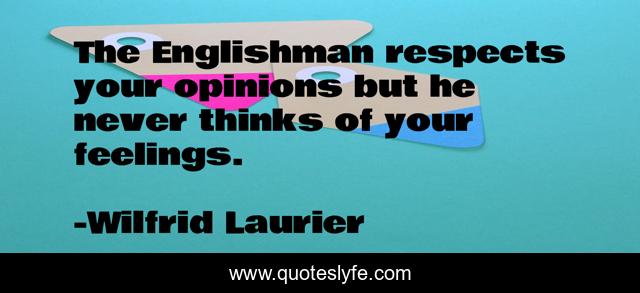This page presents the quote "The Englishman respects your opinions but he never thinks of your feelings.". Author of this quote is Wilfrid Laurier. This quote is about , england, k, u,.