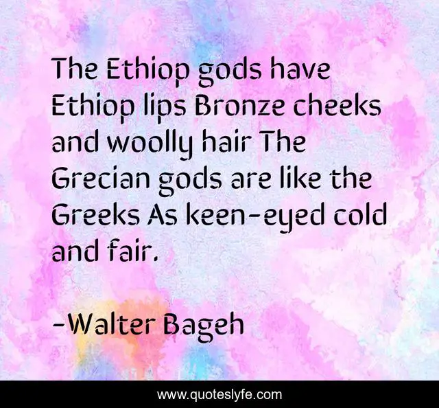 "Walter Bageh Quotes." Quoteslyfe.com, 2025. Sat. 06 Dec. 2025. <https://www.quoteslyfe.com/quote/The-Ethiop-gods-have-Ethiop-lips-Bronze-266833>.