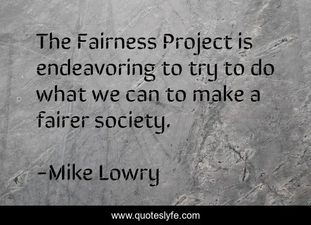 This page presents the quote "The Fairness Project is endeavoring to try to do what we can to make a fairer society.". Author of this quote is Mike Lowry. This quote is about try, project, fairness,.