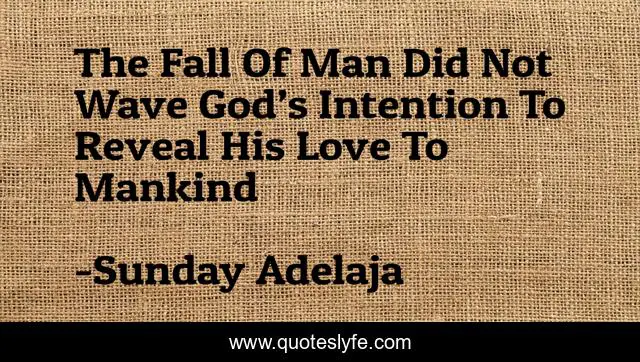 This page presents the quote "The Fall Of Man Did Not Wave God’s Intention To Reveal His Love To Mankind". Author of this quote is Sunday Adelaja. This quote is about reveal, love, god, wave, intention, mankind, fall, affection, man,.