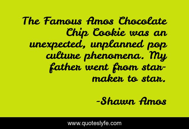 This page presents the quote "The Famous Amos Chocolate Chip Cookie was an unexpected, unplanned pop culture phenomena. My father went from star-maker to star.". Author of this quote is Shawn Amos. This quote is about culture, unexpected, father,.