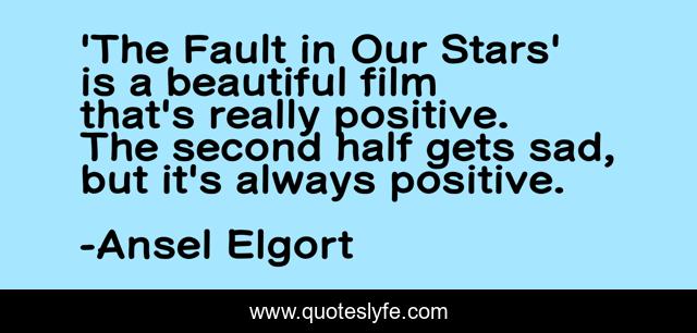 This page presents the quote "'The Fault in Our Stars' is a beautiful film that's really positive. The second half gets sad, but it's always positive.". Author of this quote is Ansel Elgort. This quote is about beautiful, stars, sad,.