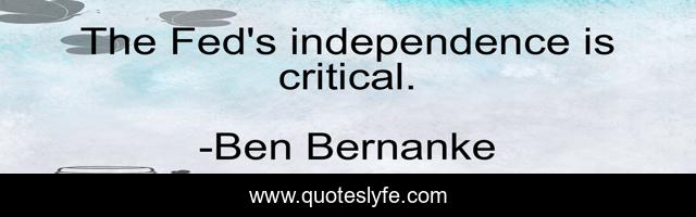 "Ben Bernanke Quotes." Quoteslyfe.com, 2025. Sat. 06 Dec. 2025. <https://www.quoteslyfe.com/quote/The-Fed-s-independence-is-critical-299828>.