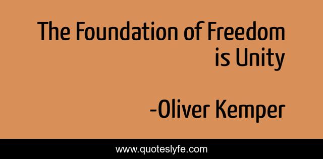 This page presents the quote "The Foundation of Freedom is Unity". Author of this quote is Oliver Kemper. This quote is about foundation, unity, freedom,.