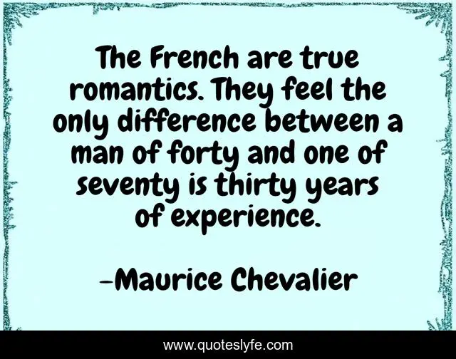 "Maurice Chevalier Quotes." Quoteslyfe.com, 2025. Mon. 08 Dec. 2025. <https://www.quoteslyfe.com/quote/The-French-are-true-romantics-They-feel-307644>.