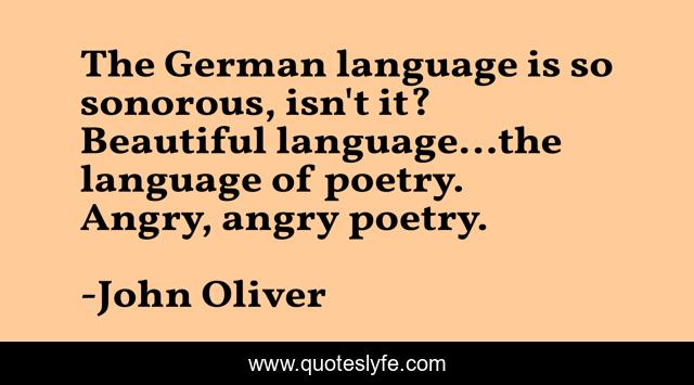 This page presents the quote "The German language is so sonorous, isn't it? Beautiful language...the language of poetry. Angry, angry poetry.". Author of this quote is John Oliver. This quote is about humor, german, poetry, germany, german-language, anger,.