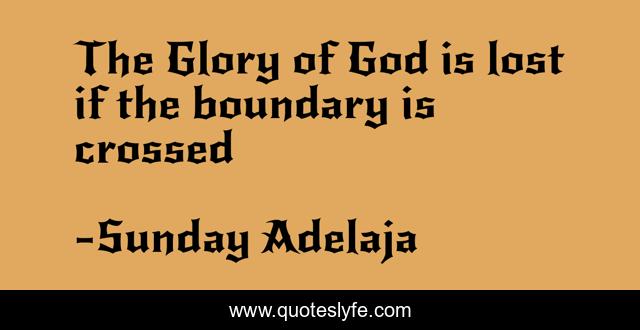 This page presents the quote "The Glory of God is lost if the boundary is crossed". Author of this quote is Sunday Adelaja. This quote is about glory, lost, god, crossed, truth, boundary,.